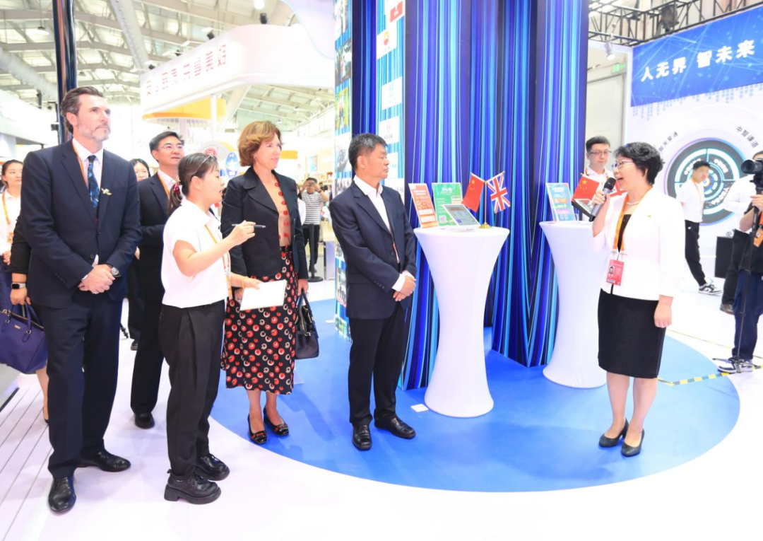 9月4日,人社部副部長吳秀章、流動管理司司長張文淼,北京市人社局局長王清旺、副局長吳曉軍等領(lǐng)導(dǎo),英國駐華大使吳若蘭(Caroline Elizabeth Wilson)、英國商業(yè)貿(mào)易部教育與技能司司長戴???Rupert Daniels)等外賓參觀中智展臺。