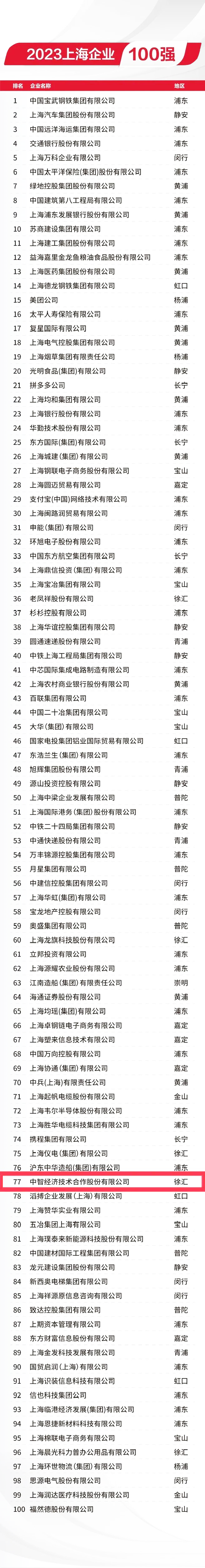 9月12日,上海市企業(yè)聯(lián)合會、上海市企業(yè)家協(xié)會、上海市經(jīng)濟團體聯(lián)合會和解放日報社在中國金融信息中心會議廳聯(lián)合發(fā)布2023上海百強企業(yè)榜。中智股份以183.2082億元的營業(yè)收入榮登上海企業(yè)100強第77名,上海服務(wù)業(yè)企業(yè)100強第42名。