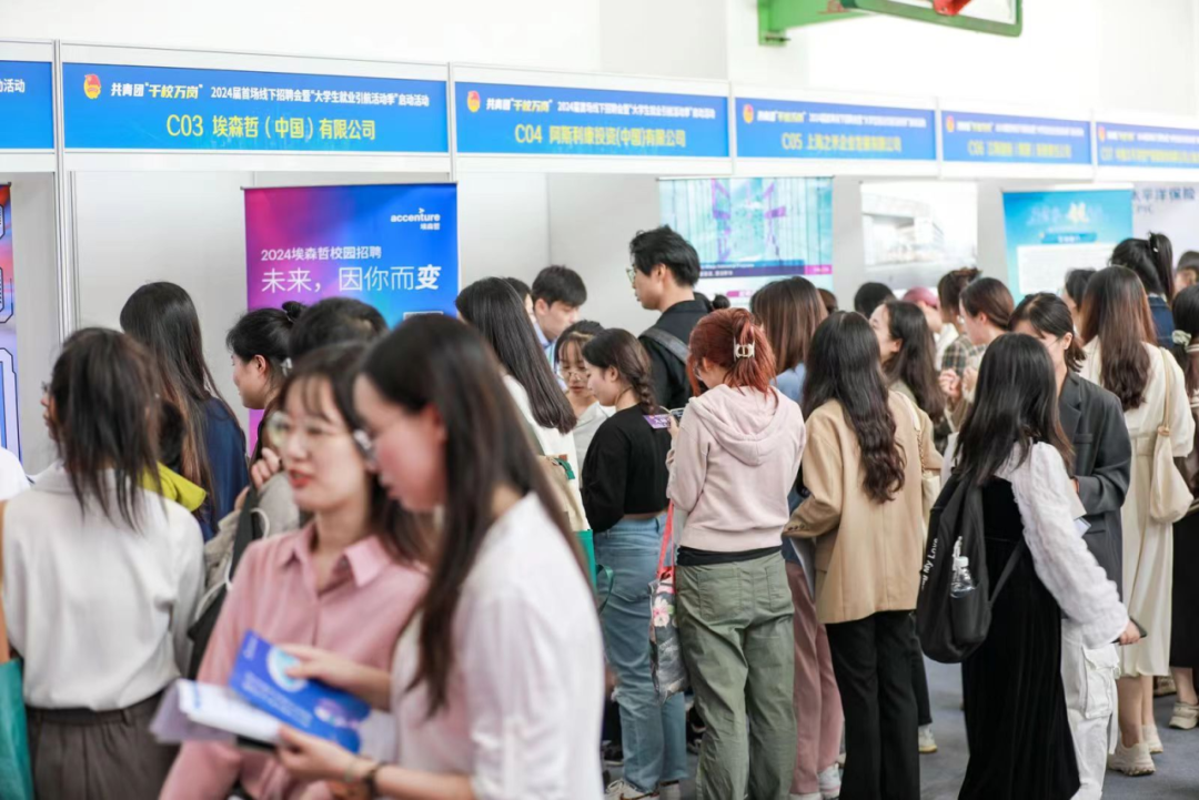 招聘會現(xiàn)場氣氛熱烈,各招聘企業(yè)的展位前人頭攢動。來自復(fù)旦大學(xué)、上海交通大學(xué)、同濟大學(xué)、華東師范大學(xué)、華東理工大學(xué)、上海外國語大學(xué)等50余所高校的7000多名大學(xué)生踴躍應(yīng)聘,大家來到心儀的企業(yè)展位前或瀏覽招聘信息,或與企業(yè)HR交流咨詢。各企業(yè)招聘人員則耐心地為同學(xué)們介紹企業(yè)情況、招聘崗位及要求,詢問求職意向和需求,招聘求職雙方熱情高漲。