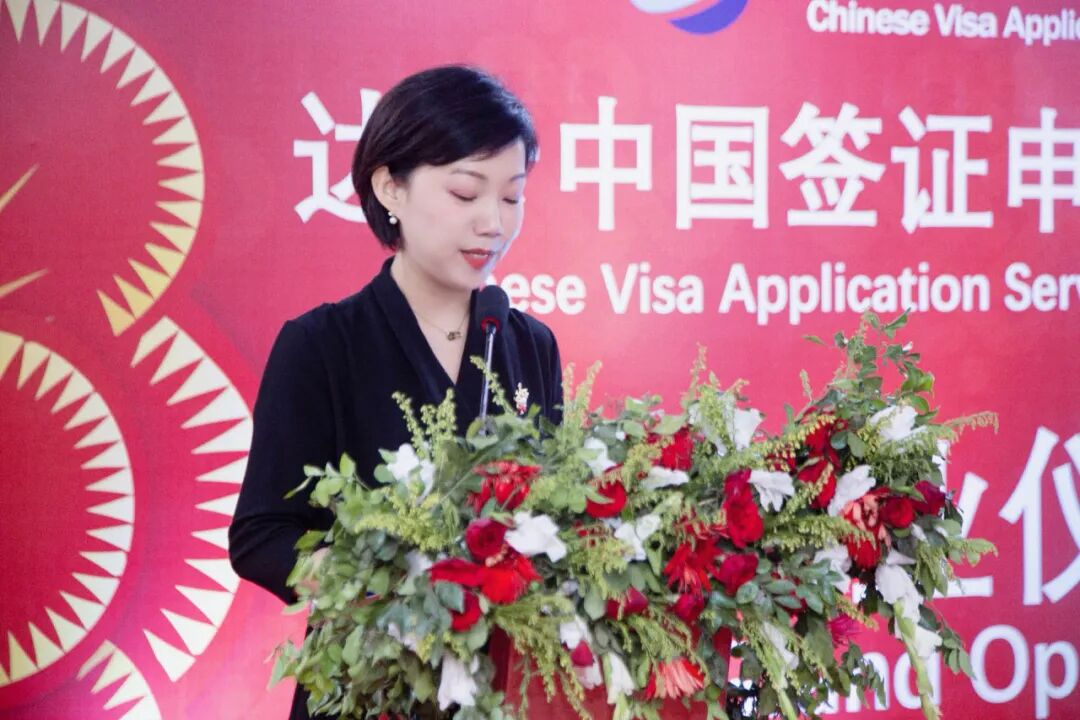簽證中心運(yùn)營方中智國際商務(wù)總經(jīng)理助理王小菁致辭,向駐孟加拉國中國大使館以及長期以來關(guān)心和支持中智簽證業(yè)務(wù)發(fā)展的各界朋友表示最誠摯的感謝和最熱烈的歡迎。達(dá)卡簽證服務(wù)中心的成立,是中智集團(tuán)響應(yīng)國家“一帶一路”倡議和高水平對外開放,促進(jìn)人文交流,便利跨國旅行和商務(wù)往來的重要舉措。它不僅代表著中智國際商務(wù)秉承“服務(wù)全球,智聯(lián)世界”的信念和對提升服務(wù)質(zhì)量、優(yōu)化申請流程的堅(jiān)定承諾,也體現(xiàn)了中智集團(tuán)對促進(jìn)國際交流與合作的積極態(tài)度和堅(jiān)實(shí)步伐。