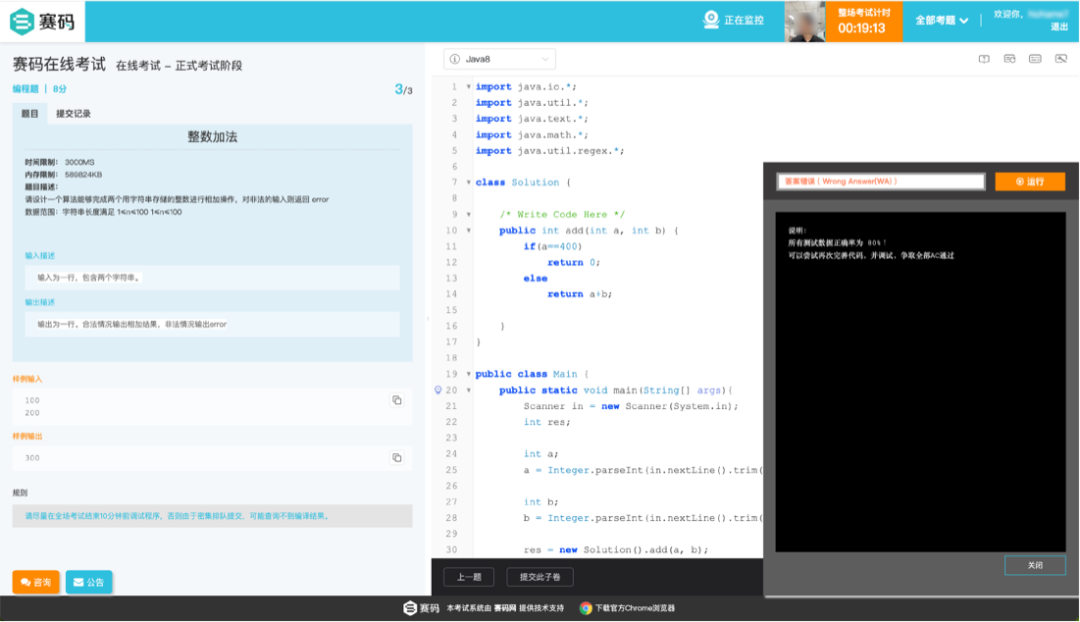 賽碼網已為一線行業(yè)領軍企業(yè)提供近千萬人次的人才甄選服務,系統(tǒng)分布式可無限彈性擴充,云端部署,能夠穩(wěn)定承載大規(guī)模在線考試的需求。為確保線上比賽的順利實施,賽碼網項目組定制了完善的風險排查和防御方案,考前進行高并發(fā)壓力測試,優(yōu)化服務器配置,同時部署自動擴容機制,為全國范圍內超15萬考生提供流暢的作答體驗。