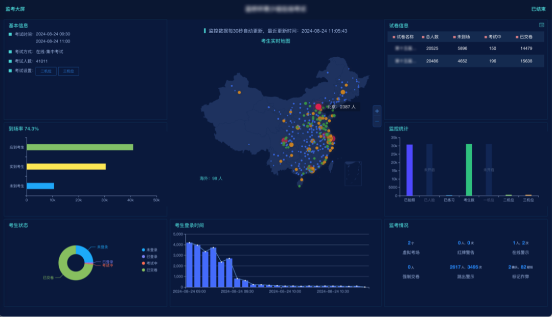 本次線上比賽啟用了多項防作弊科技,通過人臉識別核對考生身份;智能偵測考生考試IP地址;設置網址黑名單、監(jiān)測通訊工具;考試全程AI智能監(jiān)測錄屏;三機位多視角監(jiān)考等方式實時監(jiān)控云考場狀態(tài)。上千名監(jiān)考人員在監(jiān)考大廳進行監(jiān)督檢查,用AI技術疊加人工云監(jiān)考的方式嚴肅考場紀律,確保為每一位考生提供公平、公正的賽事平臺。