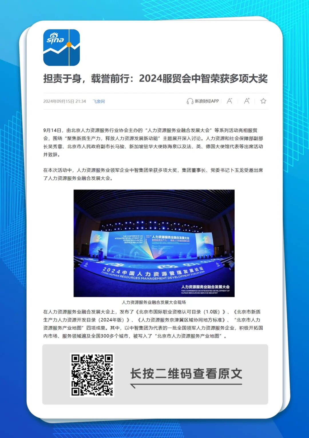 · 人社部副部長吳秀章一行參觀服貿(mào)會中智展區(qū),中智在2024中國人力資源管理發(fā)展論壇上榮獲多項大獎