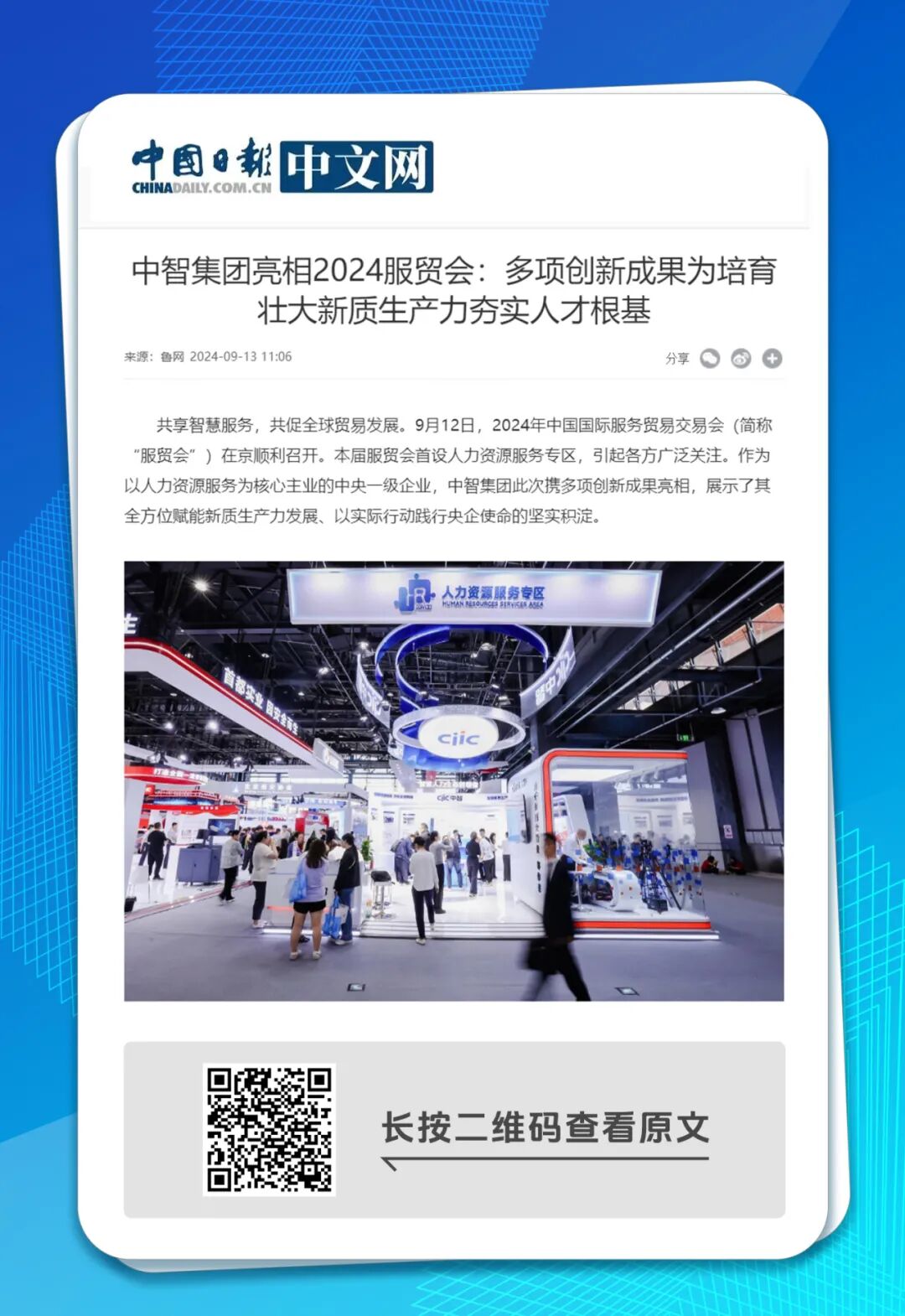 2024年中國國際服務(wù)貿(mào)易交易會圓滿收官。本屆服貿(mào)會,中智集團攜多項創(chuàng)新成果亮相;聯(lián)合一眾央企打造“央企直聘 戰(zhàn)新崗位 觸屏可及”直播帶崗活動;開設(shè)中智會客廳,邀請業(yè)務(wù)專家,針對熱點問題現(xiàn)場開展針對性咨詢。在吸引了大量國內(nèi)外參展商和觀眾現(xiàn)場駐足參觀的同時,也被眾多知名媒體競相報道。